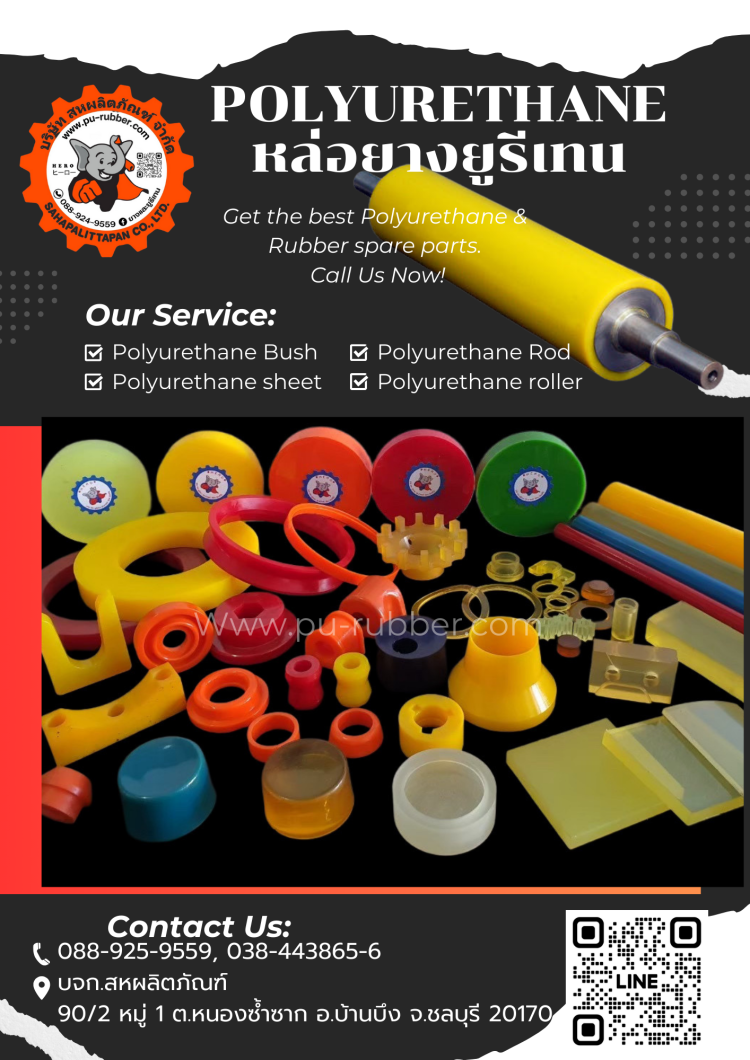 ผู้เชี่ยวชาญด้านการผลิตลูกกลิ้งยูรีเทน, ลูกกลิ้งยาง, ยางรองแท่นเครื่องจักร, ลูกล้อรถเข็น, อะไหล่ยอยยาง, ซีล-โอริง, พลาสติกวิศวกรรม ให้คำปรึกษาและเลือกวัสดุยางยูรีเทนเกรดที่เหมาะสมแต่การใช้งาน ด้วยทีมงานมืออาชีพ